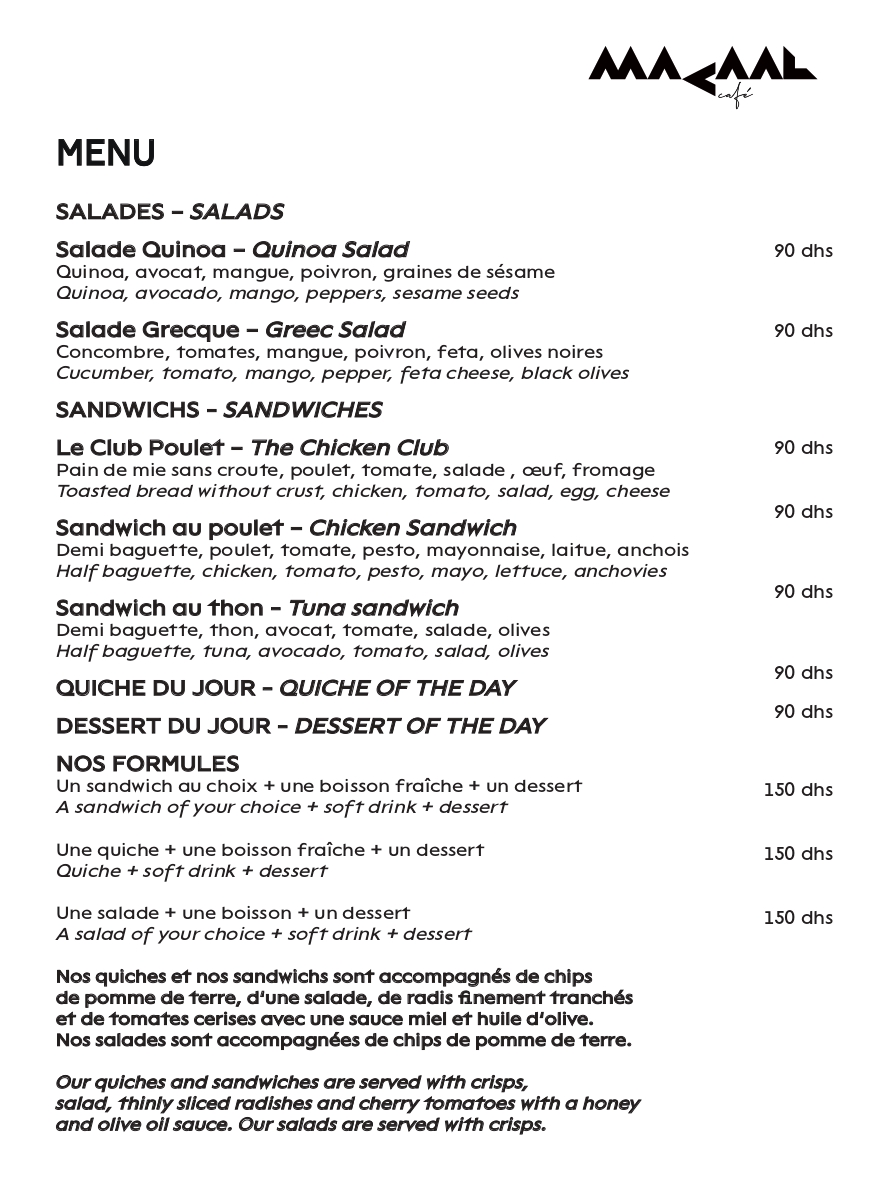اكتشفوا قائمة مأكولات مقهى MACAAL من خلال النقر هنا.